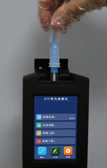 4.樣本檢測:將拭子插入處于待檢測界面的ATP儀器實驗倉內,閉合儀器上蓋,開始檢測。