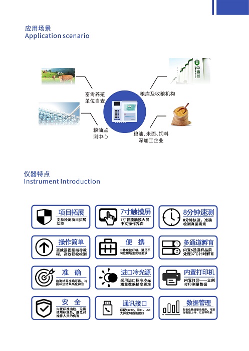 真菌毒素定量快速檢測儀可快速準(zhǔn)確定量的測定出玉米、小麥、大米、飼料原料及飼料成品中的真菌毒素,包括黃曲霉毒素B1、玉米赤霉烯酮、嘔吐毒素、赭曲霉毒素A、伏馬菌素、T2毒素等含量。